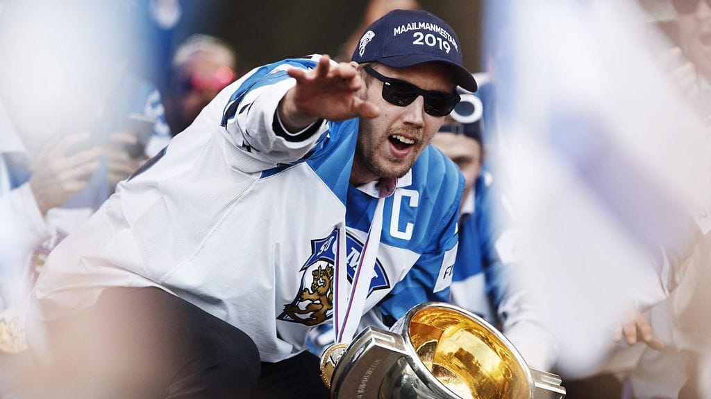 Leijonien sentteri Juho Lammikko villitsi myös kymmentuhatpäisen juhlayleisön Mörkö-huutoihin kapteenin kunniaksi.