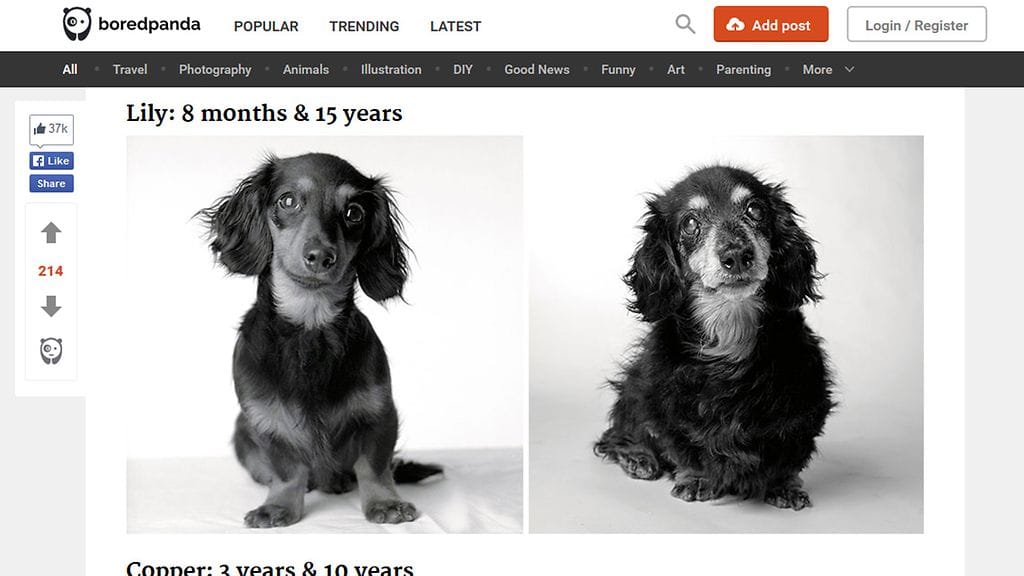 Valokuvaaja Amanda Jonesin ottamat kuvat valloittivat netin hetkessä. Otokset kuvaavat koiria pentuina ja vanhuksina. Jones inspiroitui omasta mäyräkoirastaan Lilystä, ja päätti koota koirakuvista kirjan Dog Years, suomeksi koiranvuosia.