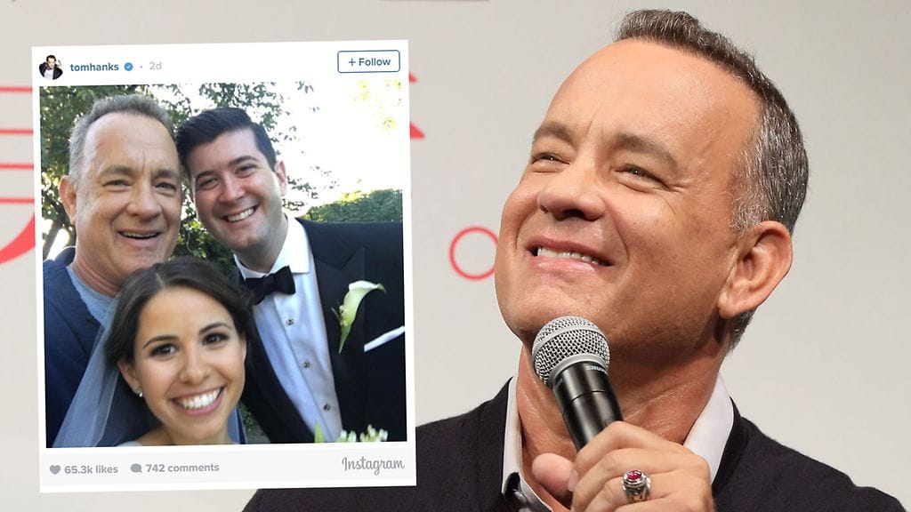 Tämän jälkeen Hanks jatkoi matkaa kuin mitään ei olisi tapahtunut. Hän kuitenkin jakoi Instagramissa selfien, jonka otti hääparin kanssa.