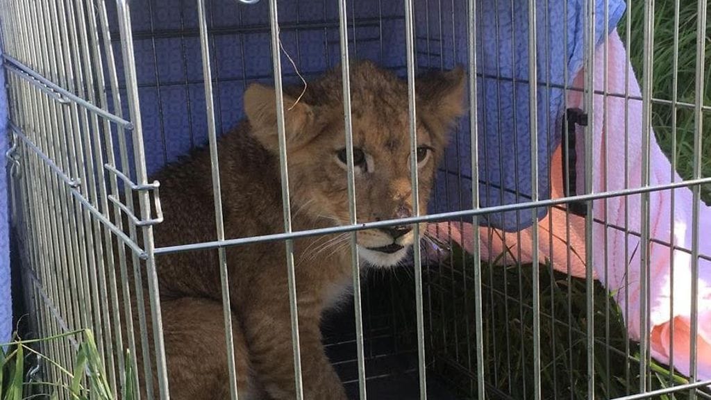 Hollantilaislenkkeilijä oli juoksemassa sunnuntaina niityn läpi, kun polulta löytyi häkissään oleva leijonanpentu.