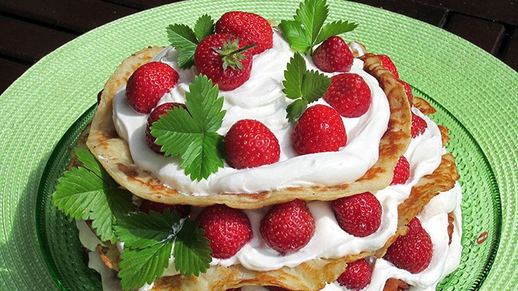 Valmista lettutaikina kätevästi käyttäen valmista lettu- ja vohvelijauhoseosta, lisää vain vesi. Rahka keventää kermatäytettä ja pitää rakenteen kasassa.