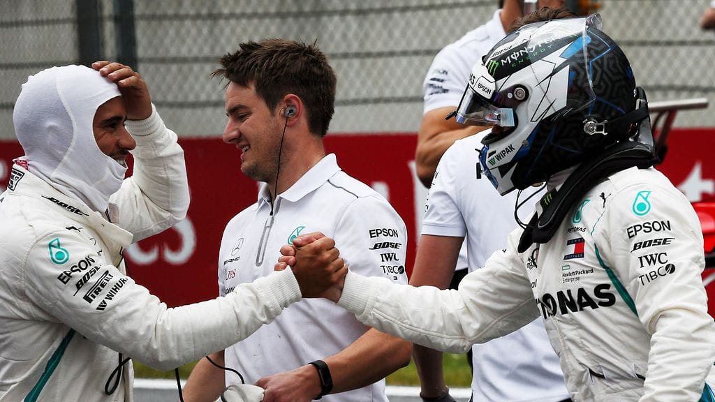 – Tämä on erinomainen tulos (tiimille). Valtteri teki tänään parempaa työtä, ja olen iloinen hänen puolestaan, Hamilton kertoi.