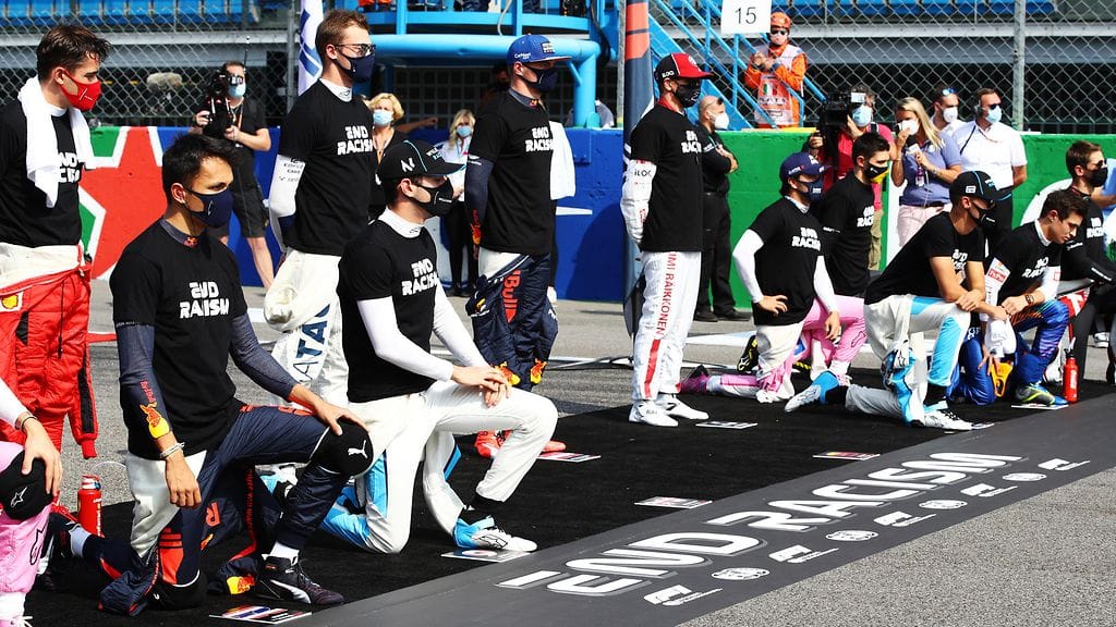 Sunnuntaina Monzassa kaikki oli toisin. Hamilton ja Ferrarin Sebastian Vettel loistivat poissaolollaan, kun F1 teki jo tavaksi tulleen rasismin vastaisen taistelun tukieleen.