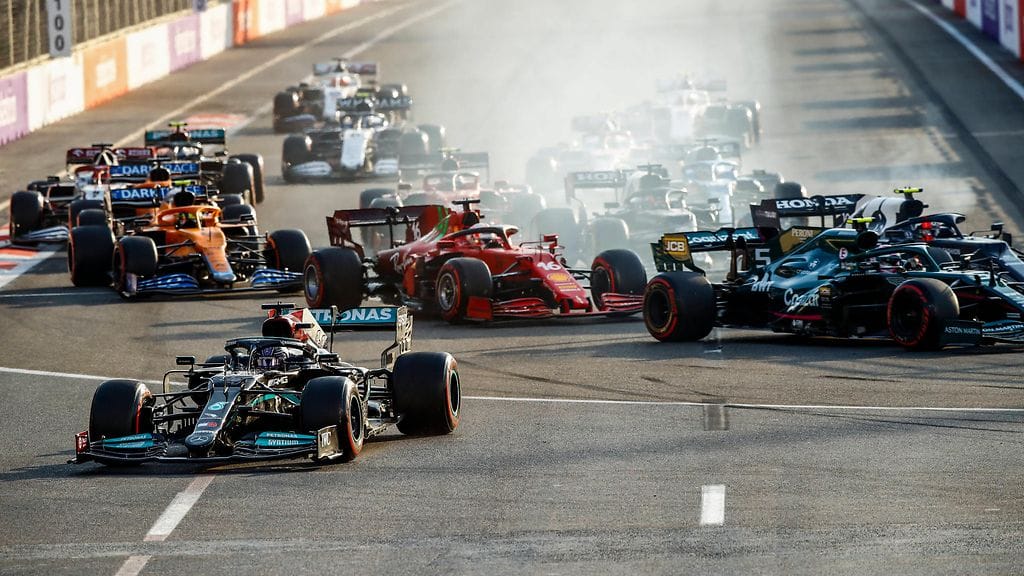 Hamilton oli nousta kärkipaikalle Bakun kisan lopussa uusintalähdön yhteydessä, kun hän kiilasi johdossa olleen Red Bull -kuski Sergio Perezin edelle. Pian hän kuitenkin löi jarrunsa lukkoon ja ajautui ulos radalta.