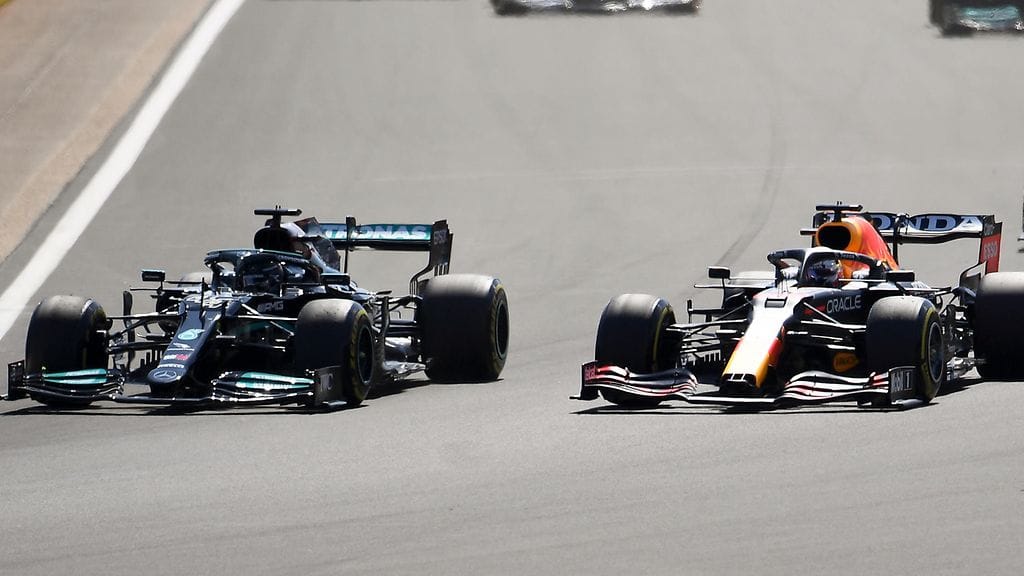 Hamilton haastoi kisan startissa paalupaikkamies Max Verstappenin hurjassa taistelussa. Vauhdikkaassa Copse-mutkassa hän syöksyi sisäpuolelta ohitukseen, mutta Verstappen sulki tien. Autot osuivat yhteen, ja Verstappen rysäytti soran yli rajusti rengasvalliin.