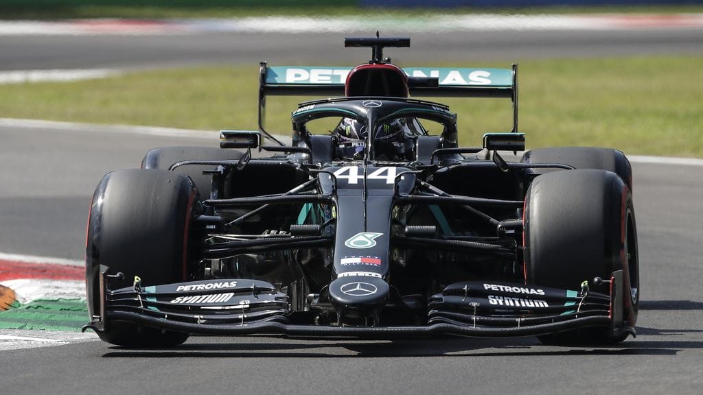 Mercedeksen brittikuski Lewis Hamilton oli törmätä edessä olleisiin hitaisiin autoihin Italian GP:n kolmansien harjoitusten loppuhetkillä. Hamilton lähestyi radan viimeistä mutkaa, kun yhtäkkiä hänen edessään olleet autot levittäytyivät rinnakkain. Tämä yllätti Hamiltonin.