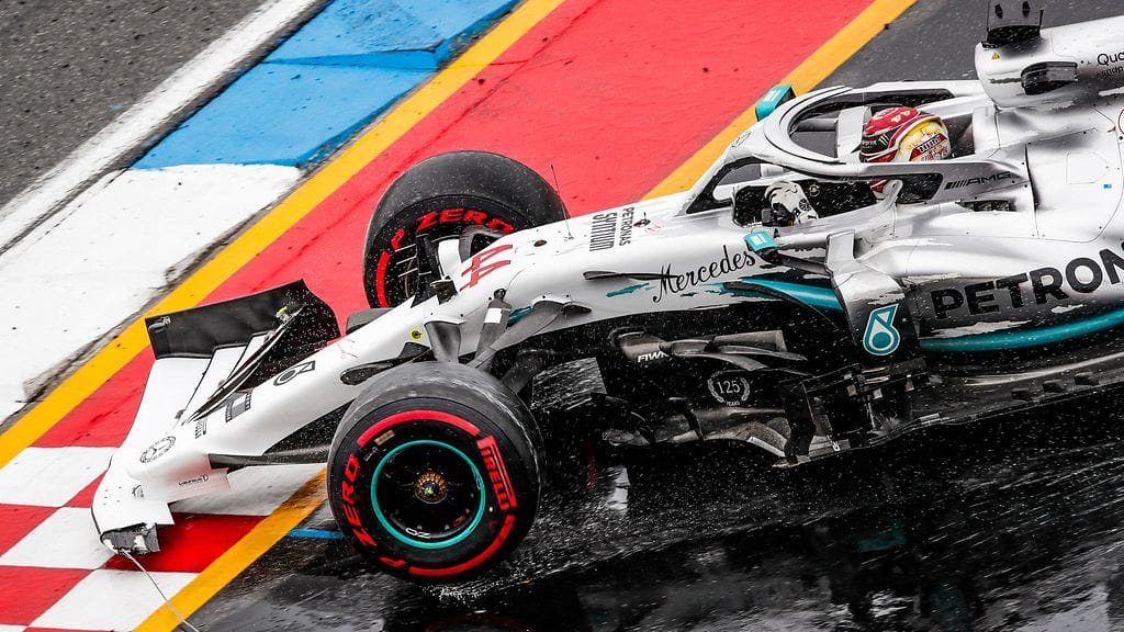 Epävakaissa olosuhteissa ajetussa kisassa Hamilton rikkoi muun muassa etusiipensä ja teki isoja virheitä. Hän kävi varikolla peräti kuusi kertaa, saaden kerran aikarangaistuksen sääntöjenvastaisesta saapumisesta.