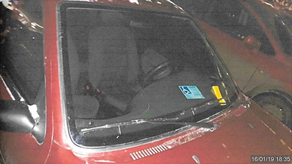 Pysäköinti alueella on maksullista, mutta nainen ei maksanut parkkeerauksesta, koska hänellä on autossaan liikkumisesteisen pysäköintitunnus. Tällainen invaliditunnus oikeuttaa pysäköintiin maksutta maksullisella yleisellä pysäköintipaikalla.