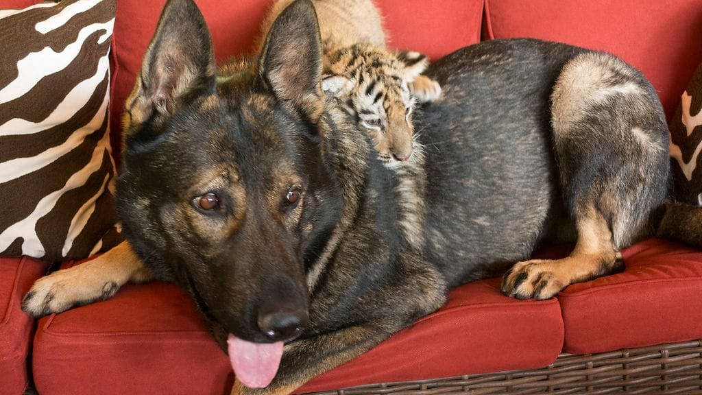 – Ne ajavat toisiaan takaa, hyppivät ylös alas, Mario kuvaa tiikerin ja koiran leikkiä.