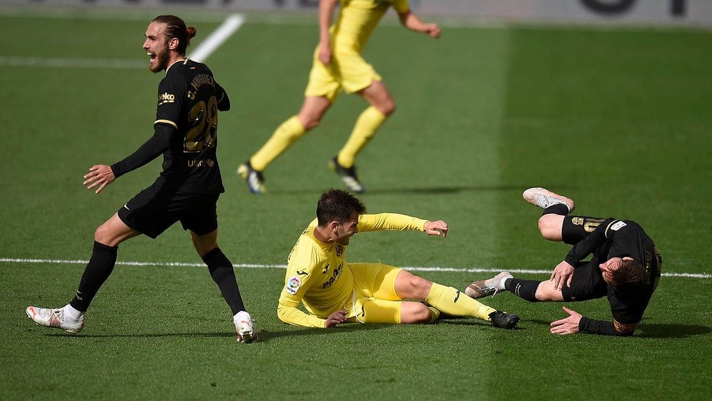 Barcelonan tähtipelaaja Lionel Messi koki kovia, kun Villarrealin Manuel Trigueros liukui argentiinalaista rajusti jaloille.