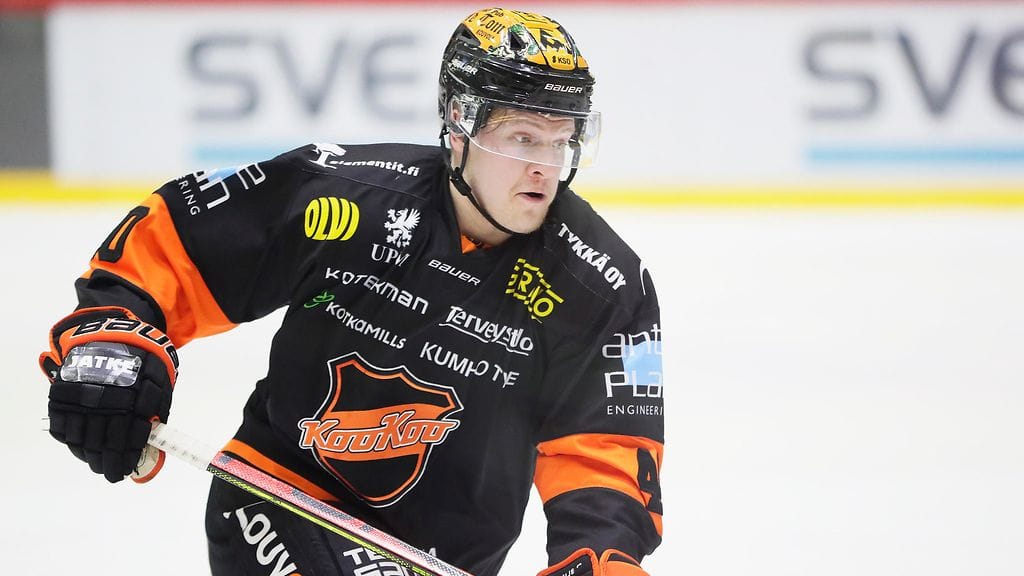 Bergerin taklaus osui Lukon hyökkääjään Toni Koivistoon, joka ehti hieman väistää kohti tullutta KooKoo-puolustajaa.