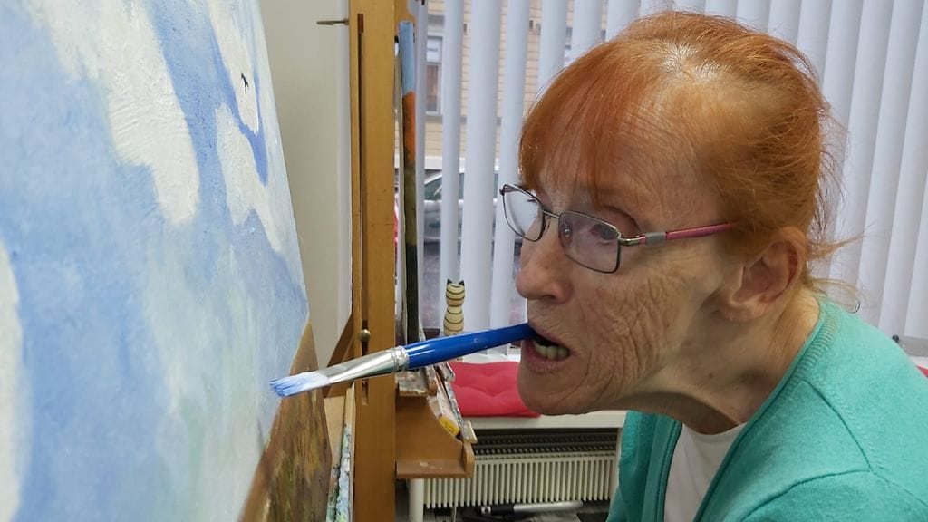Lissu Lundström, 68, ei voi käyttää käsiään apuna päivittäisissä askareissa. Siitä huolimatta hän toteuttaa rakastamaansa ammattiaan taiteilijana. Lundström maalaa suullaan, ja se on hänelle ainoa tapa tehdä taidetta.