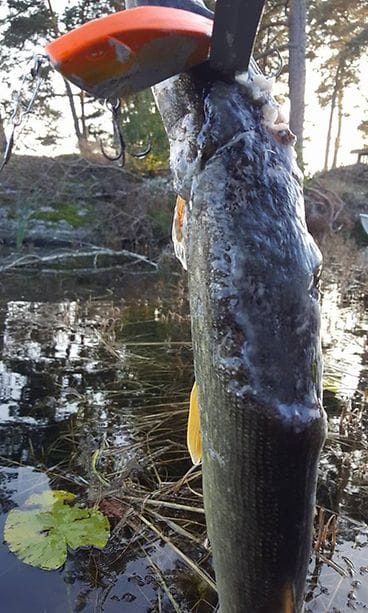 Turkulainen Juuso Manninen oli viettämässä kaverinsa kanssa eilen vapaapäivää keväällä puhdistetulla Littoistenjärvellä uistellen haukia. Tavallisesti runsashaukisessa järvessä ei kaksikon hämmästykseksi näkynyt evääkään, ennen kuin viimeisillä heitoilla uistimeen tarttui epämiellyttävä yllätys: elävältä mätänevä ja pahalta haiseva kala.