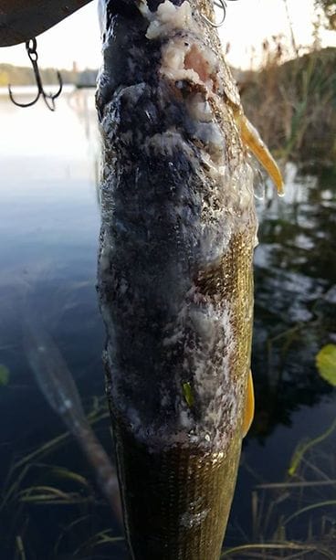 – Hauet haisivat voimakkaasti mädältä. Esimerkiksi tästä kuvaamastani hauesta oli jo liha irtoamassa kokonaan. Osa lihasta pyrstöstä alkaen oli ihan hyväkuntoista, mutta päästä alkava alue oli jo mätänemässä.