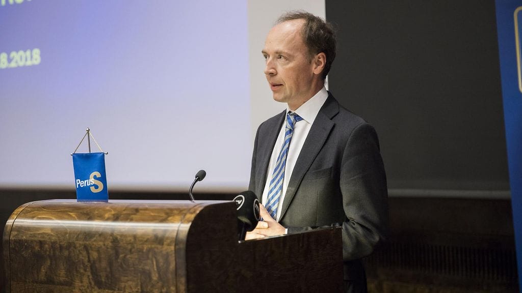 Perussuomalaisten puheenjohtaja Jussi Halla-aho avasi kokouksen kello 11.25 ja esittelee periaateohjelman kello 13.05.