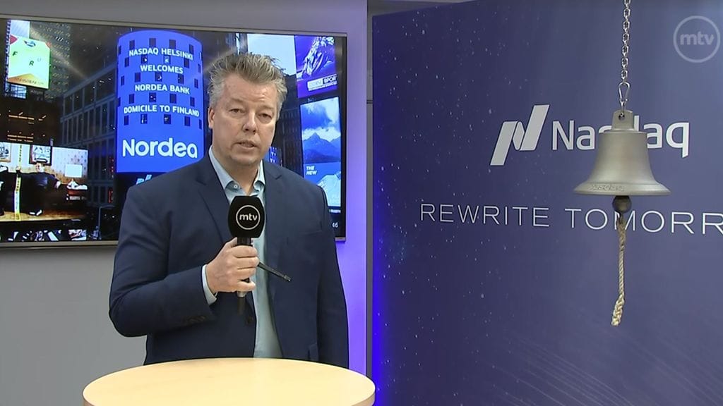 Nordea listautui tänään aamulla Helsingin pörssiin. MTV Uutisten politiikan ja talouden toimituksen päällikkö Jussi Kärki oli paikalla, kun Pörssitalolla soitetettiin kelloja klo 10.