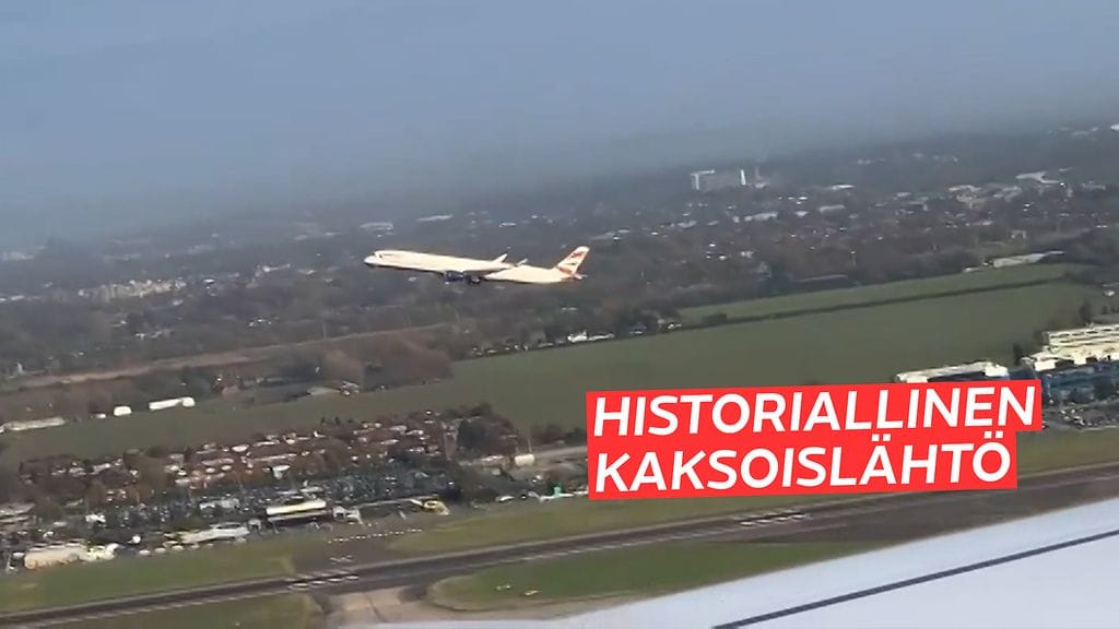 Matkustamon ikkunasta kuvatulla videolla näkyy, kuinka Virgin Atlantic -lentoyhtiön koneen vieressä nousee täysin samaan aikaan British Airways -lentoyhtiön kone.