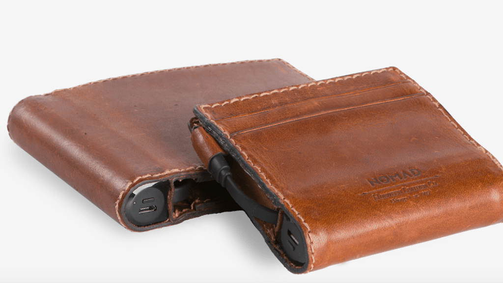 Nomad Leather Wallet on iPhonen kumppaniksi suunniteltu nahkainen lompakko, jossa on sisäänrakennettu pieni lisävirtalähde ja iPhonen latausliitäntään soveltuva lightning-kaapeli. Lompakko on saatu pidettyä ohuena, vaikka se kätkee sisälleen akun.