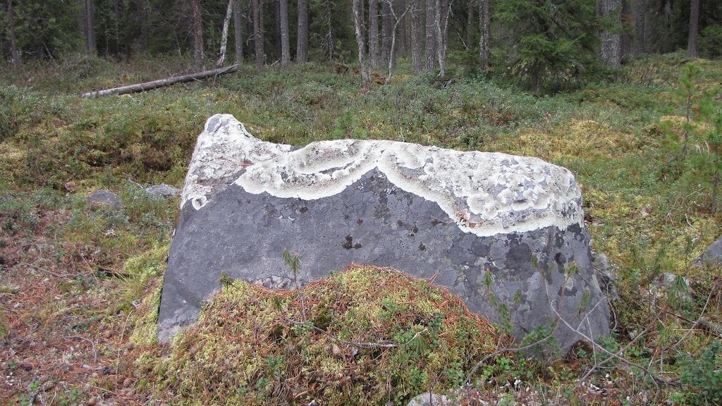 Todellisen löydön teki kuusamolainen Leena Karvonen, jonka kuvassa metsän kivi näyttää peittyneen koristeelliseen pitsiliinaan.