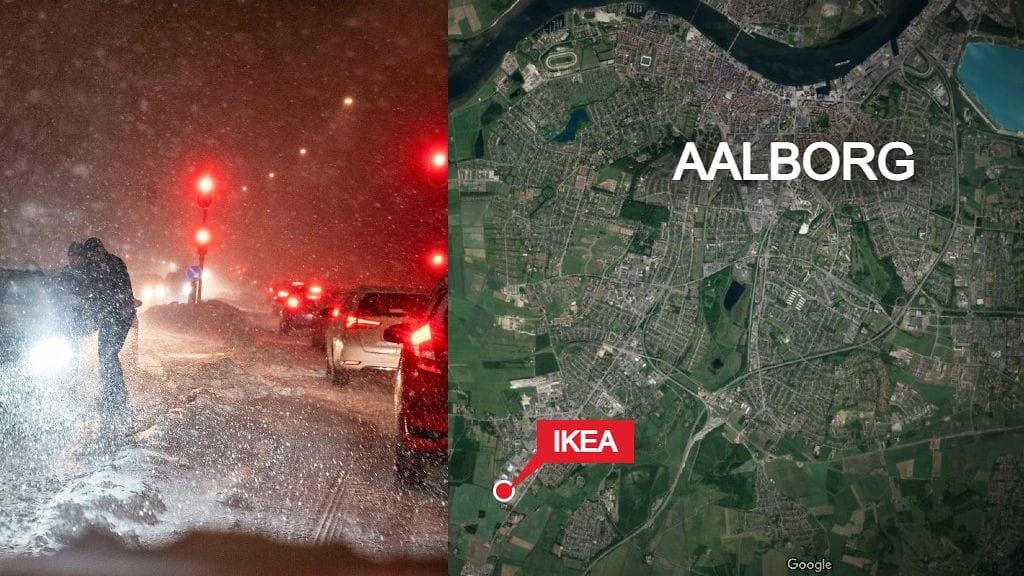 Tanskassa Pohjois-Jyllannissa 27 ihmistä joutui viettämään yön Ikea-tavaratalossa Aalborgissa alueelle iskeneen lumimyräkän takia.