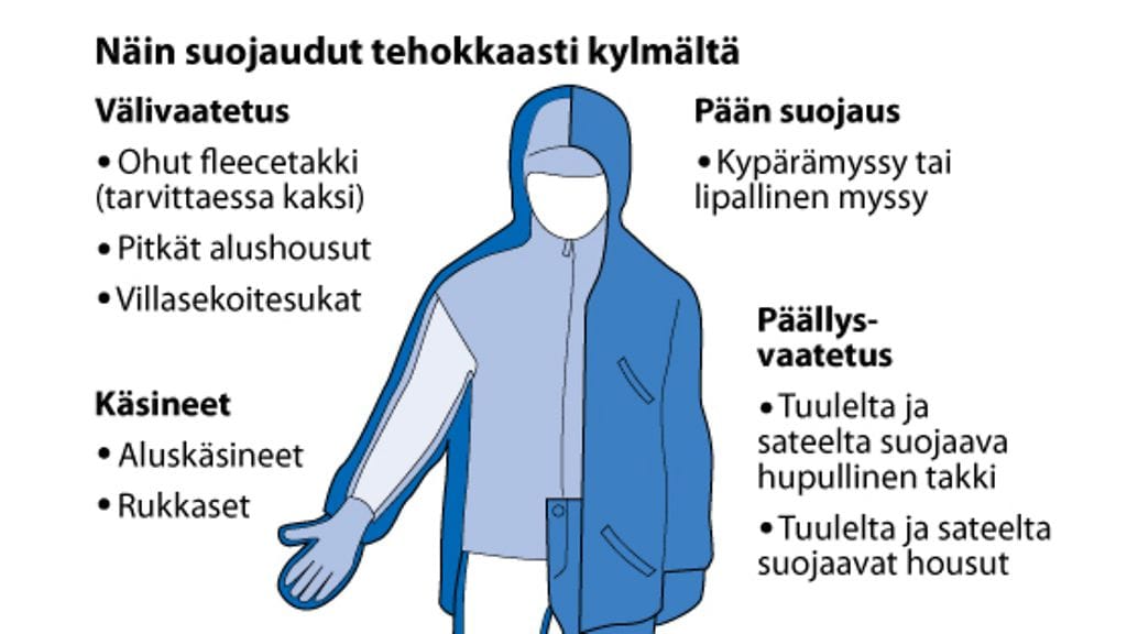 Kerrospukeutuminen on avainsana talvisiin ilmoihin varustautumisessa. Monta ohutta kerrosta vaatteita lämmittää enemmän kuin yksi paksu kerros: Vaatteet eivät itsessään lämmitä, vaan ne auttavat kehoa varastoimaan tuottamansa lämmön.