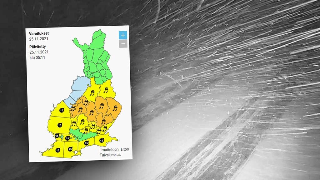 Yön ja tämän päivän aikana Suomen yli pyyhkäisevä lumipyry voi tuoda paikoin jopa 15 senttiä lisää lunta maan keskivaiheille. Ilmatieteen laitos on antanut useita varoituksia huonosta tai erittäin huonosta ajokelistä.