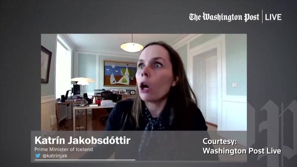 Pääministeri Katrín Jakobsdóttir oli keskellä etähaastattelua Washington Postin kolumnistin David Ignatiuksen kanssa, kun maanjäristys iski.