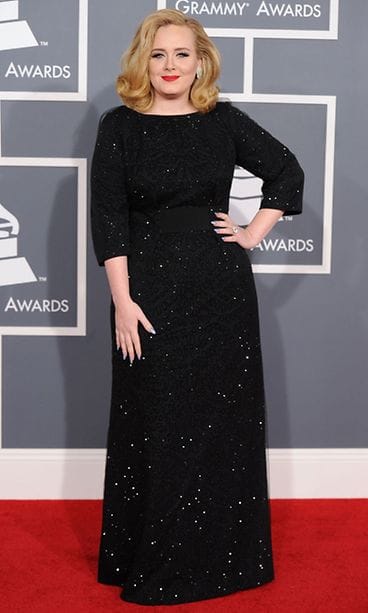 Musta väri on erityisen vaikuttava näky vaaleahipiäisen tähden yllä, sillä materiaalin viettelevän värin ja Adelen erityisen vaalean ihon muodostama kontrasti on vertaansa vailla. Vaikuttavaa olemustaan Adelella on ollut tapana korostaa entisestään kirkkaanpunaisen huulipunan voimin.