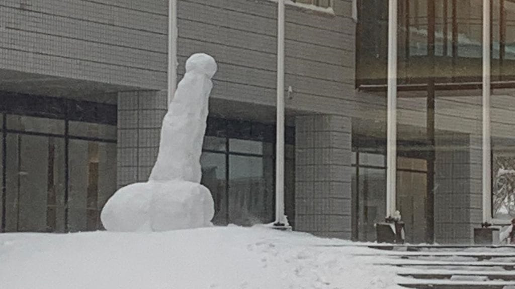 Lunta on tullut viimeisen kahden päivän aikana valtavasti Uudellemaalle ja siitä on otettu ilo irti. Kirkkonummella se kuuluisa joku luova ihminen keksi rakentaa lumesta suuren lumipeniksen kunnantalon pihaan.