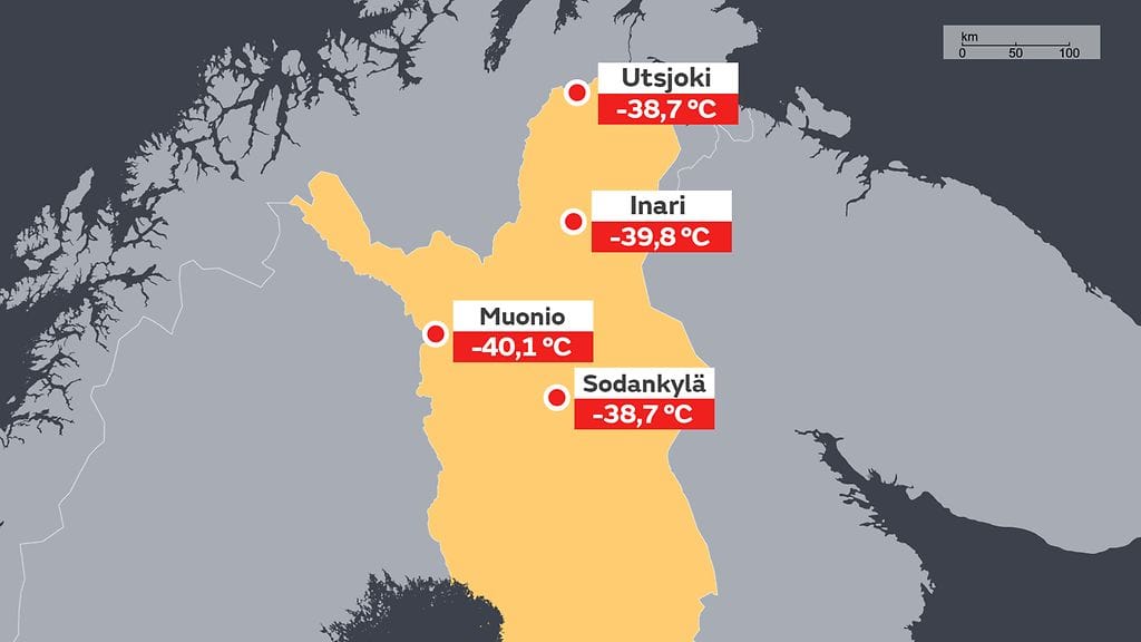 Kylmää on ollut muuallakin Lapin alueella. Yli 38 asteen pakkasia mitattiin muun muassa Inarissa, Sodankylässä ja Utsjoella.
