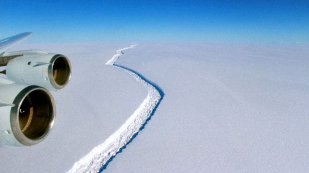 Etelämantereen länsirannikon niin sanottuun Larsenin jäähyllyyn jo vuosia sitten ilmaantunut railo on kasvanut pituudeltaan tammikuun alusta jopa kymmenen kilometriä. Mikäli lohkeama pitenee vielä 20 kilometriä, valtamereen irtoaa pinta-alaltaan jopa yli 5000 neliökilometrin suuruinen jäävuori.