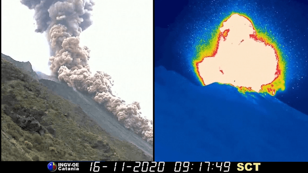 924 metrin korkeudessa sijaitsevasta kraaterista vuosi räjähdyksen seurauksena valtava määrä laavaa. Voimakas purkaus tallentui saaren valvontakameroihin.