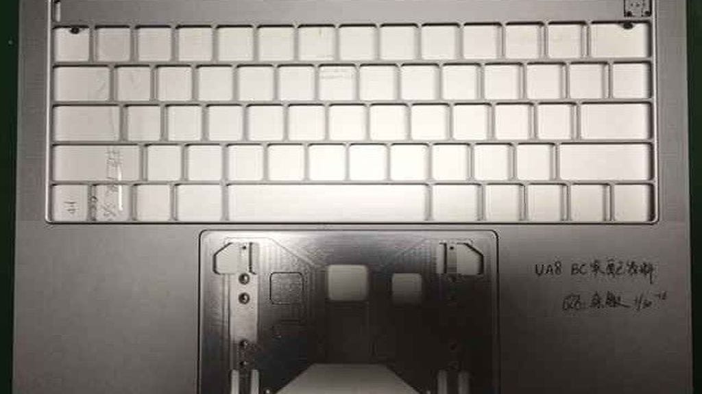 Cult of Macin aiemmin vuotama kuva väitetystä MacBook Pron alumiinirakenteesta, jossa näkyy paikka kosketusnäyttöriville näppäimistön ylimpänä.