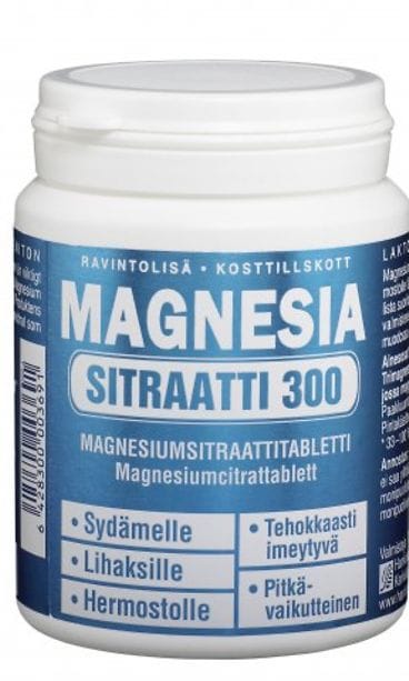 Magnesiumsitraattitabletti on laktoositon, hiivaton, makeuttamaton ja gluteeniton.