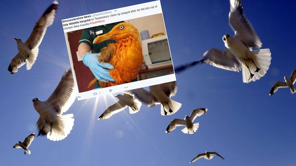 Epäonninen lokki oli värjäytynyt täysin oranssiksi ja siitä nousi voimakas curryn haju. Selvisi, että se oli ollut paikallisen ruokatehtaan roskiksilla napostelemassa, kun se oli kipsahtanut tikka masalaa sisältäneeseen vatiin.