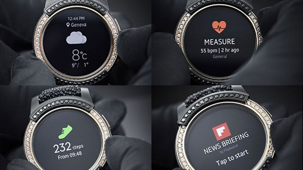 Samsung yhdistää jälleen voimansa jalokivi- ja designmaailman kanssa. Yhteistyössä de GRISOGONOn kanssa suunniteltu Gear S2 -erikoismalli on koristeltu kullalla ja jalokivillä.