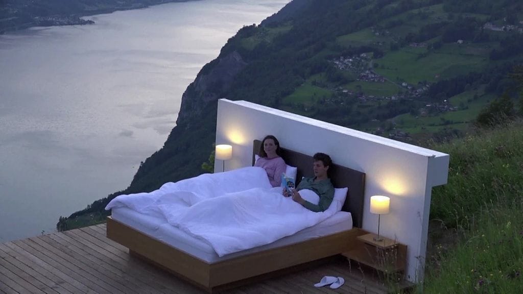 Kolmikko halusi lähestyä matkailua ja majoittumista uudesta perspektiivistä. Lopulta syntyi hotelli, jonka huoneissa ei ole seiniä tai kattoja. On vain "terassi", jolta voi ihailla eteen avautuvaa vuori- ja järvimaisemaa sängyllä lokoisasti maaten.
