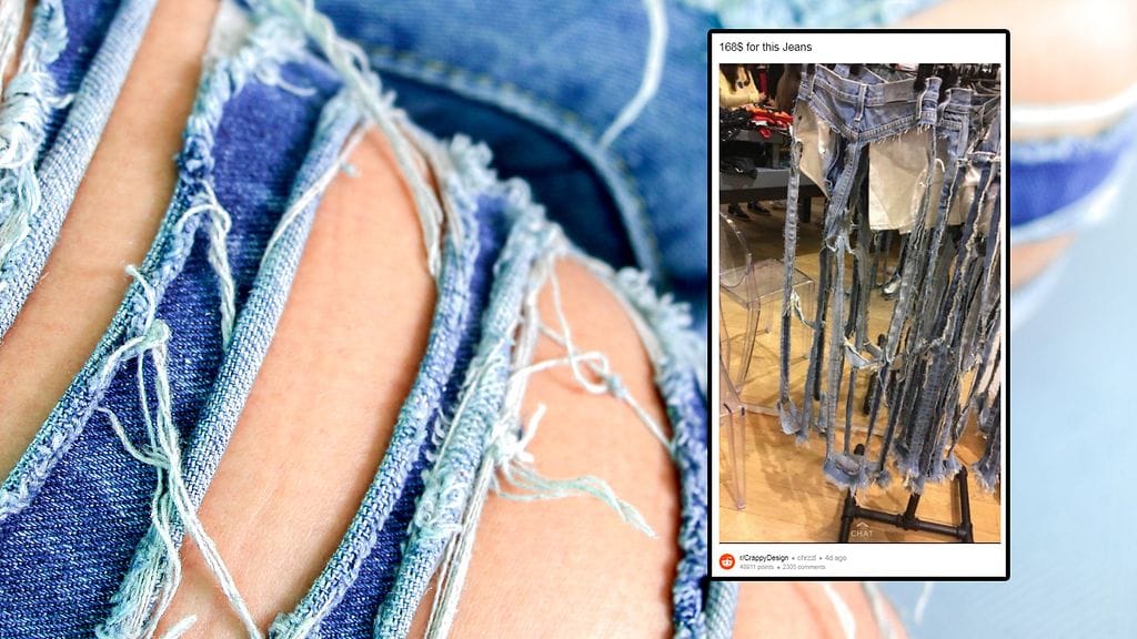 Riekaleisten farkkujen tyyris hinta puhuttaa, sillä kangasta on kovin vähän.
