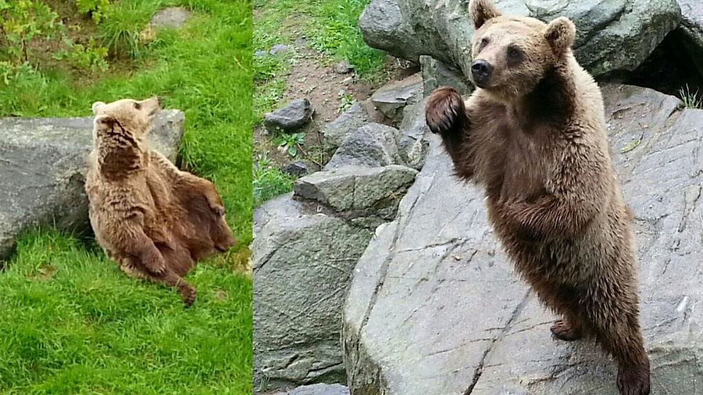 – Malla-karhu tähyili venyttelyjensä välissä taivaalle. Liekö myrskypilviä tähynnyt - vai sittenkin hoitajan heittelemää välipalaa?, hän pohtii.