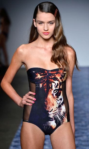 Australiassa järjestetyssä We Are Handsome -brändin muotinäytöksessä ihasteltiin näyttäviä eläinaiheisia bikineitä ja uimapukuja mallien yllä.