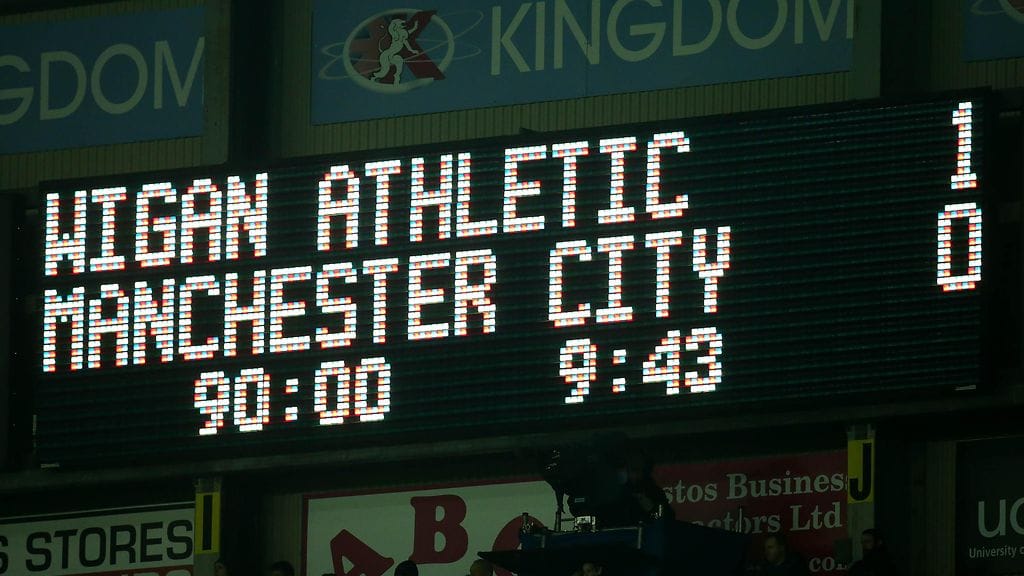 Jalkapallon Valioliigan kärjessä oleva Manchester City koki melkoisen shokkitappion maanantaina, kun se hävisi FA Cupin neljännesvälierissä Englannin kolmanneksi korkeimmalla sarjatasolla pelaavalle Wiganille 0-1.