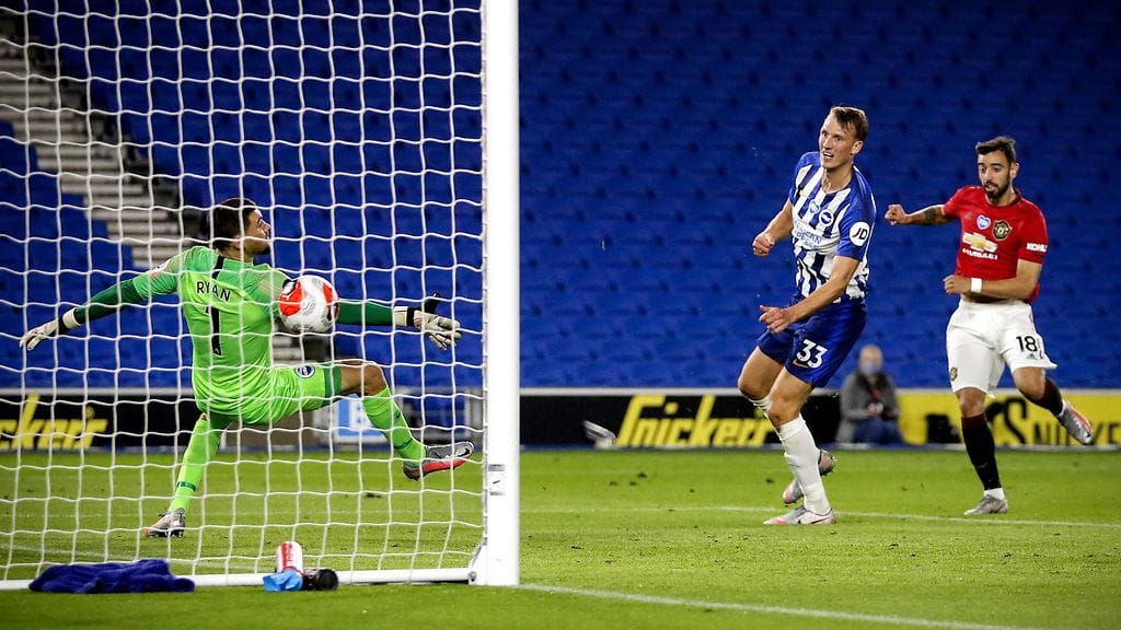 Valioliigajoukkue Manchester Unitedilla on yhä mahdollisuus päästä mukaan Mestarien liigaan. United voitti vieraissa Brightonin 3–0.