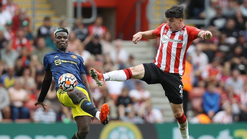 Vaikka Manchester United hallitsikin ensimmäistä jaksoa, vastasi puoliajan ainoasta osumasta Southampton. Southampton rynnisti Jack Stephensin pallonriiston jälkeen vauhdilla kohti ManU:n maalia ja Saints-hyökkääjä Che Adamsin laukaus kimposi lopulta Fredin jalasta omaan maaliin.