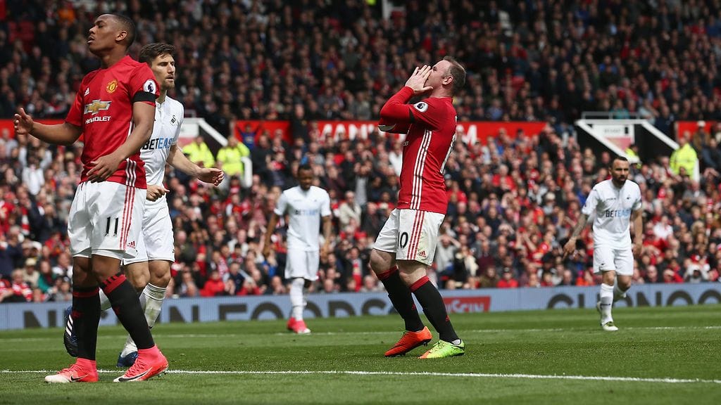 Rooney pääsi laukomaan Swansea-ottelussa rangaistuspotkun, joka tuomittiin maalivahti Lukasz Fabianskin kaadettua Marcus Rashfordin. Swansean pelaajat protestoivat voimakkaasti melko helposti tullutta rangaistuspotkua, mutta mikään ei auttanut.