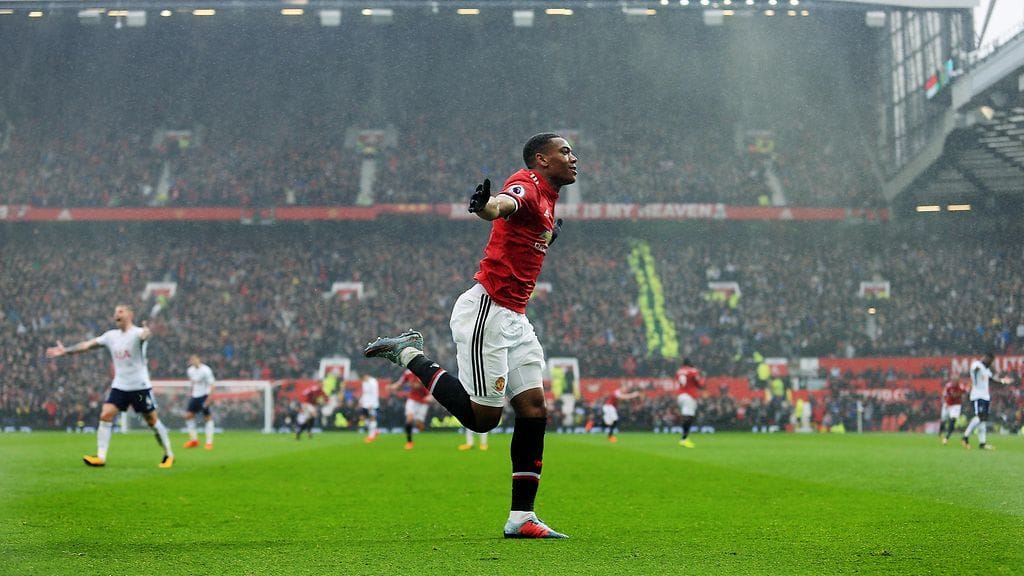 Vaihtomies Anthony Martial ratkaisi Manchester Unitedille voiton Tottenhamista Englannin Valioliigan kärkikamppailussa lauantaina.