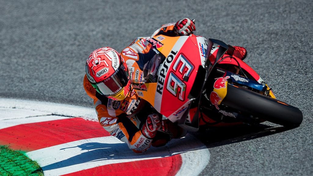 Hondan Marc Marquez ajoi kauden seitsemännen ja kolmannen peräkkäisen paalupaikkansa Itävällan osakilpailun aika-ajoissa.