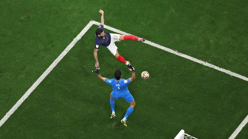 Maalin jälkeen Ranska jatkoi hyvällä sykkeellä ja onnistui luomaan tukun maalipaikkoja. Olivier Giroud täräytti ensin tolppaan ja hetkeä myöhemmin pääsi Aurelien Tchouamenin syötöstä laukomaan avopaikasta. Pallo painui kuitenkin täpärästi takatolpan ohi.