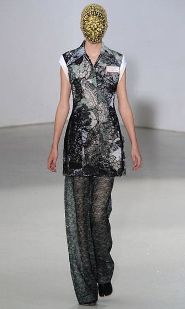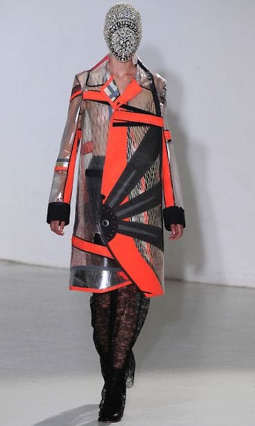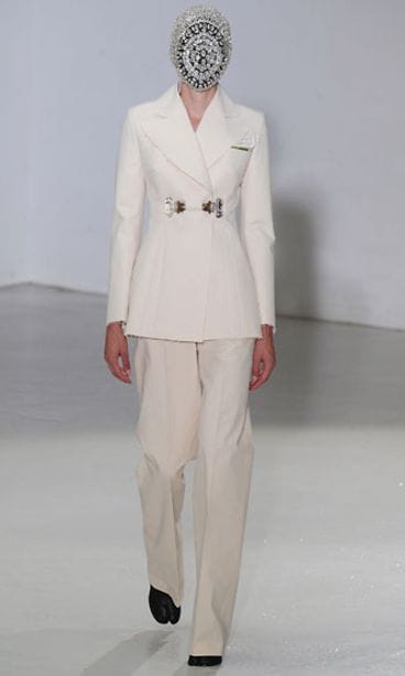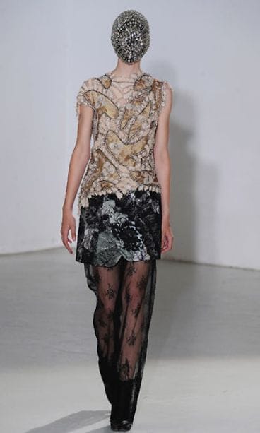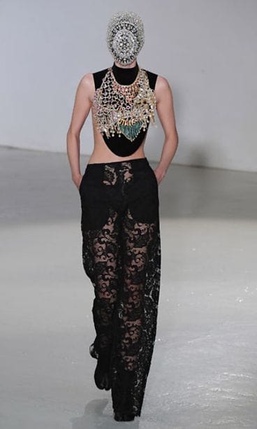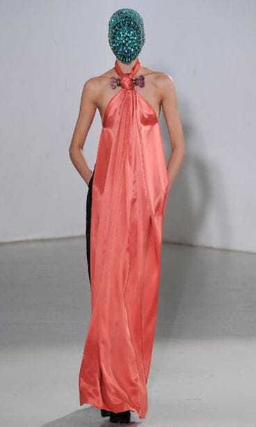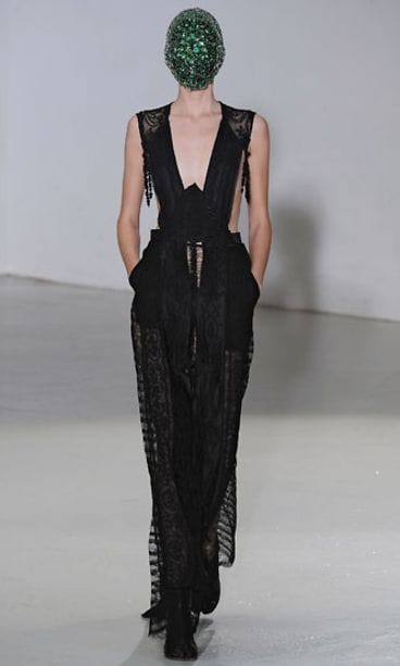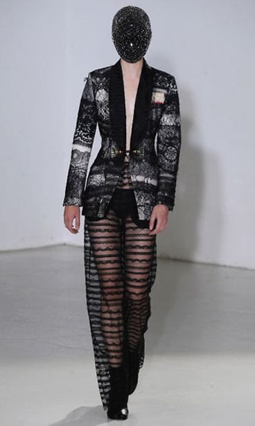 Lavalla nähtyjen asukokonaisuuksien joukossa oli useita erikoisia yksittäisiä asuja, mutta huomion catwalkilla varastivat mallien glitterillä ja tekotimantein koristellut, kasvot peittävät maskit. Yhdenkään mallin kasvoja näytöksessä ei päästy näkemään.