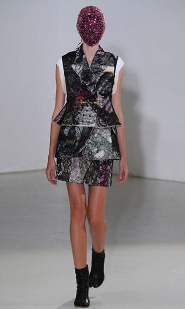Muotisuunnittelija Martin Margielan uusimpia luomuksia ihasteltiin Pariisissa järjestetyssä muotinäytöksessä. Erikoisten muotiluomusten joukossa huomiota herätti se, että asuja esitelleiden mallien kasvot oli peitetty pipoja muistuttavien kimaltavien maskien avulla.