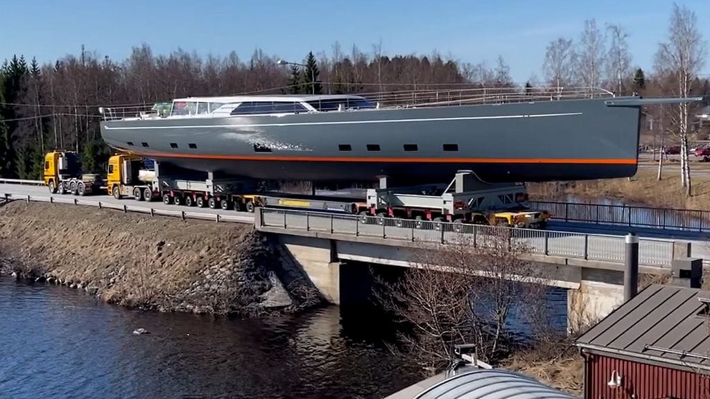 Pohjanmaalla Luodon kunnassa nähtiin häkellyttävä näky, kun kunnan läpi kuljetettiin lähes 45-metrinen luksuspurjevene.